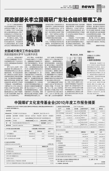 中國煤礦文化宣傳基金會(2010)年度工作報告摘要