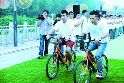 焦恩俊、薩頂頂?shù)缺娒餍侵Α皝喼尴魞尚r(shí)” ■ 本報(bào)記者 張逢/文 劉建民/攝 6月21日,中央人民廣播電臺(tái)的當(dāng)家主持人們從早上9點(diǎn)開始,騎上久違的自行車,分五條線路一邊通過電波與聽眾分享路況、體驗(yàn)北京大街小巷的變化,一邊為人們分析自行車出行的方便與困難,倡導(dǎo)自行車綠色出行。經(jīng)過一天的騎行,眾人在當(dāng)晚6點(diǎn)到達(dá)位于中央電視塔的“亞洲熄燈兩小時(shí)”活動(dòng)現(xiàn)場(chǎng)。晚8點(diǎn),隨著中央電視塔的燈光漸漸熄滅,2012年“亞洲熄燈兩小時(shí)”活動(dòng)正式開始。 騎行改變生活 “我已經(jīng)有二十年沒騎過自行車了!騎行讓我找到了年輕時(shí)的感覺,仿佛時(shí)間一下回到了20年前!”中央人民廣播電臺(tái)央廣都市總經(jīng)理孟昕興奮地說。 可是,不知不覺中,北京大街小巷上的自行車越來越少,機(jī)動(dòng)車越來越多,道路也越來越擁堵。經(jīng)過一天的騎行,孟昕等人深切感受到自行車出行環(huán)境的險(xiǎn)惡。“很多地方已經(jīng)沒有自行車專用車道,一路上,我們既要避讓行人,又要小心與機(jī)動(dòng)車發(fā)生沖突,好幾次我都差點(diǎn)摔倒。”孟昕描述道。不過,這些難處并沒有讓參與者們對(duì)通過騎行來倡導(dǎo)綠色減排的做法失去信心,相反,每個(gè)人都對(duì)這一次的騎行經(jīng)歷充滿感慨。 “其實(shí)不僅僅是這次騎行,幾乎每個(gè)周末,我都會(huì)騎自行車體驗(yàn)戶外的空氣和生活,這不僅僅是對(duì)綠色環(huán)保的一點(diǎn)支持,更是對(duì)身體的極好的鍛煉方式。”作為本次“亞洲熄燈兩小時(shí)”以及騎行活動(dòng)的冠名企業(yè),東方園林股份有限公司總經(jīng)理方儀對(duì)記者講道。“在北京擁堵狀態(tài)一直持續(xù)不見好轉(zhuǎn)的今天,北京剛剛出臺(tái)了新的自行車租賃措施,來倡導(dǎo)所有市民通過這種健康的出行方式幫助緩解機(jī)動(dòng)車造成的道路擁堵以及城市尾氣污染,因此,我們這一次的騎行活動(dòng)也恰恰契合了如今的環(huán)保主題,希望能夠通過自身的行動(dòng)來改變?nèi)藗兂鲂械挠^念,同時(shí)也通過我們騎行的體驗(yàn),來進(jìn)一步促進(jìn)城市道路的改善,讓北京以及其他各個(gè)城市道路變得更利于人們騎自行車出行,減少機(jī)動(dòng)車和自行車同時(shí)在路上行駛時(shí)所造成的危險(xiǎn)。”方儀說。 在中央電視塔前廣場(chǎng)上專門為此次騎行活動(dòng)設(shè)置了一條長(zhǎng)達(dá)50米的綠毯道路。與以往的紅毯不同,綠色與騎行環(huán)保的主題相得益彰,每一位騎車到達(dá)現(xiàn)場(chǎng)的公益人士都對(duì)此表示贊同。“我們并不希望走紅毯來作秀,而是真心希望綠毯所代表的綠色能讓環(huán)保的理念深入人心。”此次活動(dòng)的贊助單位之一北京卓杰行北亞舊機(jī)動(dòng)車經(jīng)紀(jì)有限公司總經(jīng)理鄒強(qiáng)通過綠毯之后向記者坦言,“作為二手車經(jīng)紀(jì)公司,我們本身就在倡導(dǎo)一種增強(qiáng)二手車流通,避免過多新車交易造成浪費(fèi)的理念,這也是環(huán)保的一個(gè)方面。因此,參與這樣的活動(dòng),雖然感受到騎行確實(shí)比駕駛機(jī)動(dòng)車辛苦一些,但我們希望能用簡(jiǎn)單的方式,影響到更多消費(fèi)者,不講大道理,而是親身體驗(yàn)環(huán)保節(jié)能。” 熄燈是一個(gè)環(huán)保符號(hào) 作為此次活動(dòng)的倡導(dǎo)者和主辦方,中央人民廣播電臺(tái)、央廣都市的環(huán)保人士們已經(jīng)連續(xù)五年不遺余力地宣傳綠色環(huán)保節(jié)能的理念。“騎行與熄燈,看似兩個(gè)不相關(guān)的環(huán)保形式,其實(shí)目的都是一樣的,它們都僅僅是一個(gè)小小的環(huán)保符號(hào),通過這樣微小的符號(hào)串連在一起,希望引發(fā)的連鎖效應(yīng)能夠?qū)⒎?hào)的作用擴(kuò)大化,讓環(huán)保的理念被宣揚(yáng)出去。”孟昕說,“因此,今年我們將騎行活動(dòng)作為亞洲熄燈兩小時(shí)的重要宣傳形式。” 從2008年開始,中央人民廣播電臺(tái)便聯(lián)合全世界不同國(guó)家的電臺(tái)機(jī)構(gòu),共同倡導(dǎo)舉辦“亞洲熄燈兩小時(shí)”的環(huán)保活動(dòng)。五年來,呼吁熄燈環(huán)保的聲音已經(jīng)傳遞到日本、新加坡、韓國(guó)、馬蘭西亞等20多個(gè)亞洲國(guó)家,覆蓋人口超過15億。在這五年當(dāng)中,“亞洲熄燈兩小時(shí)”節(jié)能環(huán)保的足跡遍布了北京的中央電視塔、天津廣播電視塔、香港維多利亞港兩岸的摩天大樓、日本東京的東京塔等上百個(gè)城市的標(biāo)志性建筑。每年的活動(dòng),通過短短兩小時(shí)的標(biāo)志性建筑熄燈方式,加深人們對(duì)節(jié)電節(jié)能、保護(hù)環(huán)境的意識(shí),同時(shí)呼吁大家真正行動(dòng)起來、讓環(huán)保成為一種生活方式。 “與大家所熟知的由聯(lián)合國(guó)倡導(dǎo)的‘世界熄燈一小時(shí)’活動(dòng)相似,我們也是通過‘熄燈’的方式來實(shí)現(xiàn)節(jié)能減排的目的。不過不同的是,‘亞洲熄燈兩小時(shí)’熄滅的是各城市地標(biāo)志性建筑的燈光,而并非要城市的每一盞燈都熄滅。因此我們所希望的是,熄燈成為一種節(jié)能的符號(hào),目的不在于通過熄燈來節(jié)能,而是讓節(jié)能成為一種