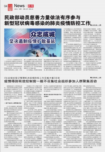民政部動員慈善力量依法有序參與新型冠狀病毒感染的肺炎疫情防控工作