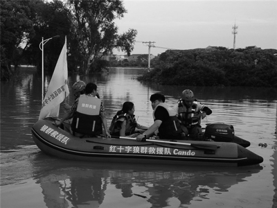 近日,江西省鄱陽縣蓮湖鄉(xiāng)藕塘村、周家村、龍口村、愛民村4個村村民被洪水圍困。浙江富陽紅十字狼群救援隊(duì)得知消息后緊急出動,用沖鋒舟轉(zhuǎn)移群眾189人,用攜帶的發(fā)電機(jī)為307戶村民手機(jī)充電,保障他們與外界的聯(lián)系。